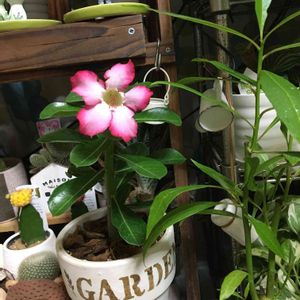 お盆の帰省から帰宅したら、2つ目の花も咲いてた キレイに咲いて、花の有るアデニウムもなかなか良いなと 他のアデニウム達の花も気になり始めた 白、ないかなぁ🤔