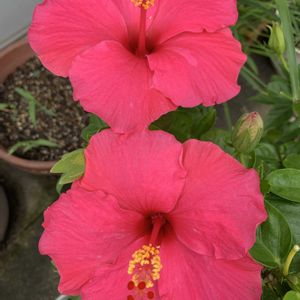 我が家のニチニチソウ三姉妹🤭 今日は蕾ちゃんが主役🤍🤍💛