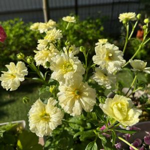 ラナンキュラス ラックス グレーシス HCで開花苗は高いので諦めていましたが、まだ小さな苗があったので買って植えてました ようやく咲いてきました😁✨✨ 少し黄色かかってますが、白に変化するのかな 今月もよろしくお願いいたします☺️