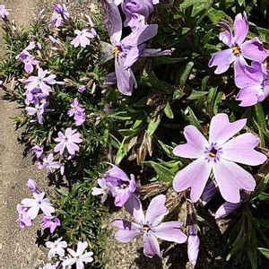 早春の、3月。私の散歩道の道際等で、冬時期にジッと耐え辛抱していた草花達は、木に芽や花を付け始めたり、また、ようやく重い土を持ち上げ、芽吹き始めて初々しいもの全てが、大きな深呼吸の中にあるようだ--- 2月からの、草花達の季節をエンジィし始めている姿、姿---その14。 光り輝く咲く、シバザクラ(芝桜)。 ---無警戒に、無造作にも地を這うように、私の散歩道の道端に、光り輝くように咲くシバザクラ。しかし、人に踏まれる様子はないようだ。 グランドカバーとして時としてよく観るが、ここでは、一塊の草花として、堅そうな針形の葉の上に、薄紫の小さな花を沢山付けて、私の足元で静かに早春の風に揺れていた。 ・シバザクラ<芝桜、別名 ハナツメクサ<花詰草/花爪草>、モスフロックス>(フロック属 ハナシノブ科) 北アメリカに分布するハナシノブ科フロックス属の常緑性多年草。 分布域は、五大湖周辺のカナダ・オンタリオ州~アメリカ・ミシガン州、ニューヨーク州~テネシー州、アパラチア山脈~ノースカロライナ州。やや乾燥気味の砂地や岩場、森林地帯の開けた場所や斜面に自生。 日本へは江戸時代末期~明治初期にかけてヨーロッパ経由で渡来し、観賞用として広く栽培されている。 花期は4月~5月。花期になると、細かく分枝した茎の頂部に、花径1~2㎝程度の小さな花を咲かせる。花は基部が長い筒状で花冠が深く5裂して平らに開く。各裂片は先端が浅く2裂し、サクラの花に似ている。 花色はピンク、白、紫、青など。 →ピンクに白い覆輪の入ったシバザクラ 花付きが非常に良く、最盛期には花の絨毯のように株を覆う。 5月の花のシーズンには、日本各地でシバザクラの花の絨毯を見ることが出来る。 葉は披針形で堅く、対生。茎は細かく分枝して地面を這うように広がる。草丈は10~15㎝と低く、一株で径50㎝ほどに広がる。 グランドカバーとしてよく利用され、踏圧には弱いので、人に踏まれない場所が適する。 常緑性ですが、冬場は葉が茶色くなる。 (出典・参考; ガーデニングの図鑑、シバザクラ Wikipedia)