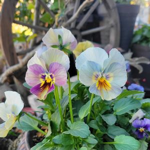 マジックアワーと パピヨンワールドの ツーショット💛🩵 気温が下がってくると 色の変化する(濃くなる) ビオラさんもいるけれど この子達は淡いお色をキープ☺️ グラデーションが素敵だなぁ✨