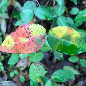 何の葉っぱかな? 色を塗ったような、 かわいい葉っぱです💕