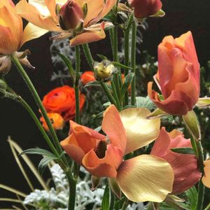 ラナンキュラス ラックス ウラノス 朝日を浴びて レトロな雰囲気のオレンジ色が光る。 ウラノスは、アリアドネより花びらが散りやすいです。