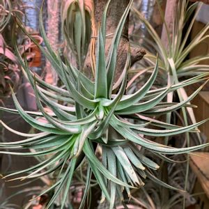 チランジア グエルジー クランプ 落としボロボロにしてしまったが、直後に子株が二つ。 親株大に子株が育つ前に、子株二つに花序出現。