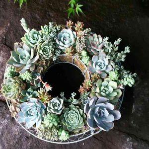 【今朝のリース】 陽射しの強い朝♪ 今日も日焼け対策して、 楽しい多肉事(*´-`)