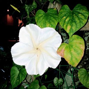 🌱夜顔🌱 ……………………ゆうがお🍃 宵闇の中に 大輪の白いお花が 際立っている様に 見えました🌑 昨晩9時半頃に📱📷