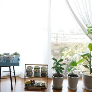 床から50cm程の高さの出窓です。 ハオ🌱さん ウンベラータ🍃 ガジュマル🌿 アルテシマ🍃 しばらくはこれで落ち着きそうです😊