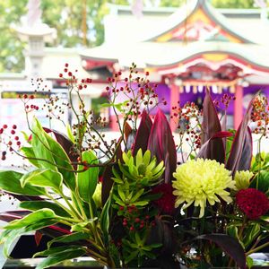 娘の住む北九州へ🚙 孫たち👧👧の七五三詣り⛩ 花手水 浮かべずに生けてありました🌿🏵