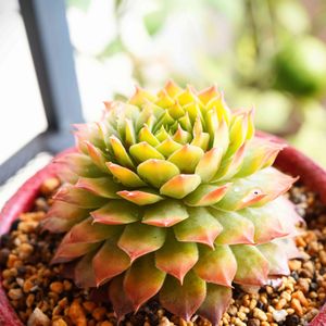 お迎えして5年ちょっとの イオナンタ・ルブラ 親株(左)が 色付いてきました。 右のは去年生まれた子株🌱 お母さんより大きくなりましたよ✨ 🌴ヤシの実チップで植えてます。