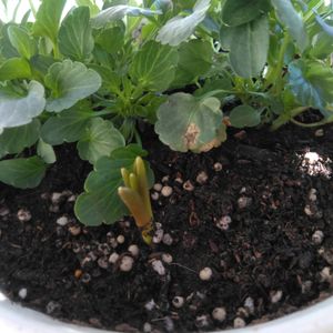 ビオラの下からミニチューリップの芽が見れてきました✨ 何色を植えたんだっけぇ?