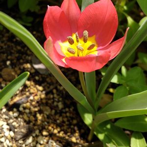 ミニチューリップの花がやっと咲きました😊40本以上色んな品種を植えたのでこれからが楽しみ😁
