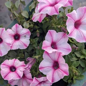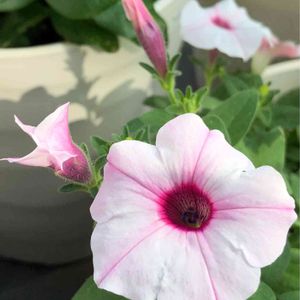 ペチュニア♪ ラブリーアイ♪🐰💕 うさぎの瞳の様な可愛らしい花色✨✨✨ 切り戻し後 また咲き始めました🥰 母の日に 5歳の孫(男児)が桃色ハートとこのお花を選んで ママと一緒に鉢に寄せ植えにしてプレゼントしてくれました💕 長く楽しめて嬉しいです🐰🤗🎶 (桃色ハートは 切り戻し後、お花待ち中です😅) ベランダのお花の世話が大好きで 我が家に来るたび、花がら摘みや虫探し🔍や水遣りをしてくれますが いつの間にか水遊び🚿に変わります😄 🏷金曜日の蕾たち 🏷乙女色クラブ 🏷19日はピンクの日! に参加させてください🎶