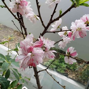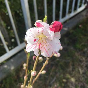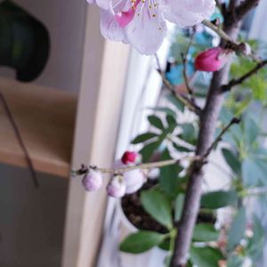 花桃 立ち源平桃🍑 毛がフサフサになってるのを一瞬カビったのかと不安になってしまった笑 室内より外のほうが良いのかなぁ、寒いほうが良さそうなイメージ😅