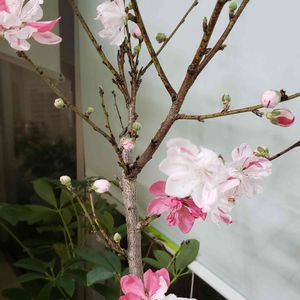 源平桃🍑 満開🌼 ちょっとの衝撃で花が散ります 室内だから大丈夫だけど、風が強いと全て飛んでいきそう➰🤣 花摘みしたくなるけど、勿体無いから我慢‼