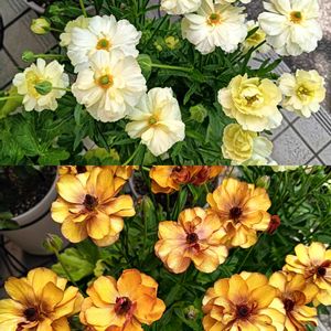 ラナンキュラス ラックス❀✨️ グレーシス🤍✨ サティロス💛🤎✨ 4月初旬の📸 今はピークを過ぎ そろそろ…な花付きです🫡