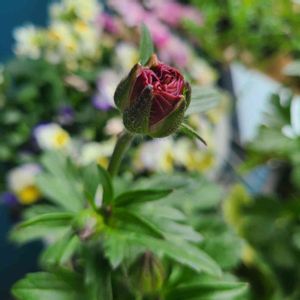 秋に植えたラナンキュラスラックス(サティロスかな?)から蕾が上がってきました😊 昨年春開花株を購入して、秋に分球して2鉢で育てています🌼