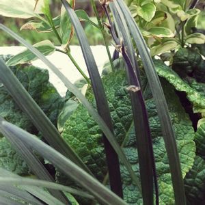黒龍の花は雨風で飛んで行ったと思いきや、先端の1個だけ白い膨らみがある❗️ 実かな~☺️ 気になる~(*゚∀゚*)🎶 葉っぱは緑で出てきて徐々に黒くなってる👀🔎🍀 やっぱり太陽かな🤔❓️