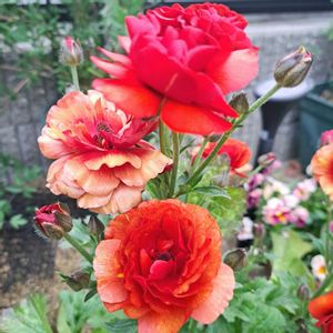 こんばんは 2年目、3年目のラナンキュラスラックスとランドセルシリーズのお花たちがみんな咲いてきました🌸 華やかです♡(o´〰`o)❤