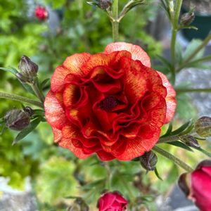 ラナンキュラスラックス💕ハデス 夏越し組の開花第3号は、ハデス。 この情熱的な赤と、時間と共に褪色していくゴールド(4枚目)が、魅力的ななラックスです。