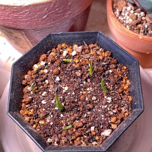 つぃに、こんなんなてしまた!🤣 左上がぁ、前のオテロイのまだ発芽してなぃ3粒、左の下がぁ、おまけでくれたぁユッカペリクローサ?右上がぁエボリスピナ!10個注文なのにぃ、12個ぁりまちた😍右下がぁ、またまたオテロイ20個がぁ25個ぁりまちた😍昨日蒔いたのにぃ、エボリスピナがぁ、もぉ5個発芽してたぁ😆