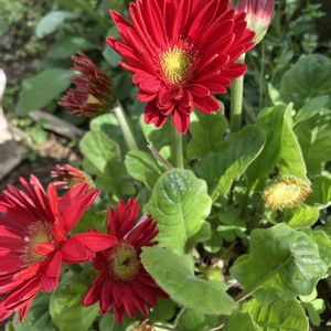 暑さの中赤いガーベラが二度目の花🌸を咲かせてくれました、ありがとう。毎日水やりも大変ですが花を見る時心が癒されます。