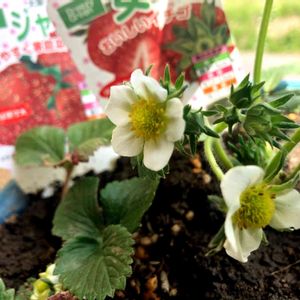幼farm 苺の花が4つ咲いた🍓昨日居の暖かさに感謝