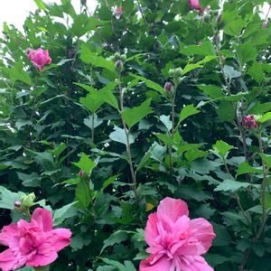 朝散歩 ピンクの 紫陽花可愛い❤️ 左上三河千鳥 芽が大きくなって来た 🎵🎵