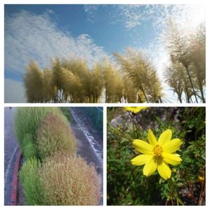 今日の散歩道🚶②秋 夏の花たちが元気ですが、秋めいても来てます(^O^)/ これから楽しみです🍁 黄色い子は、コスモスで良いと思うのですが😅💦
