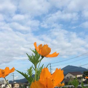 通学路脇に咲いている オレンジ色の秋桜🌼*・ 通学路脇には沢山の秋桜が毎年咲いて 楽しませてくれています。 今年もすごく楽しみです!