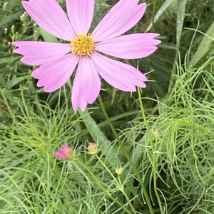 こんにちは 昨晩の雨降りのお陰で今朝の散歩 は涼しくてお花さん達は水滴が付いてました💦 ①ピンク色のコスモス ②白色のコスモス ③ツユクサ ④シバザクラ