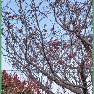 やっと咲きましたね。 高い所に咲く、紅色ハナミズキ アパート敷地内で見られましたよ。 2023年4月9日撮影
