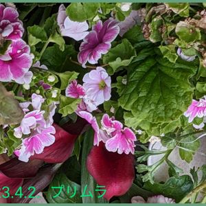 可愛い色合いのプリムラ アパートのベランダにて。 2023年4月2日撮影