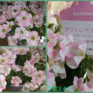 サントリー サフィニア アート ももいろハート なす科 自宅のベランダに置いてあります。 2023年4月13日撮影①