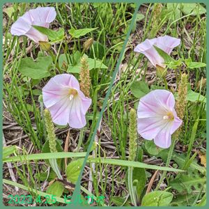 おはようございます☔ 先日の帰り道植込みに 色々な小さな花たちが仲良く 咲いている💞ヒルガオ 4月24日撮影