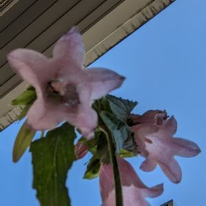 駅前軒下のホタルブクロ。 (焦点がボケています) 2023年5月9日撮影
