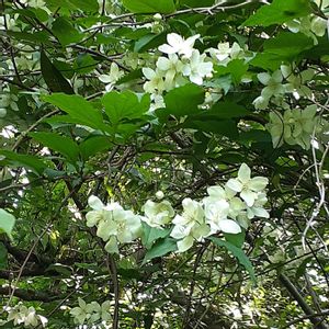 梅花空木 バイカウツギ アジサイ科 バイカウツギ属 梅雨空に清楚な花が似合います ほんのりと良い香りがしました