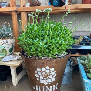 20200413mon𖡼.𖤣𖥧キロク . 🐙さんみたいなお花がキュート💛 . . . 今日は暴風警報で娘達お休みで念願の多肉屋さんへ行く予定がダメになりました😭