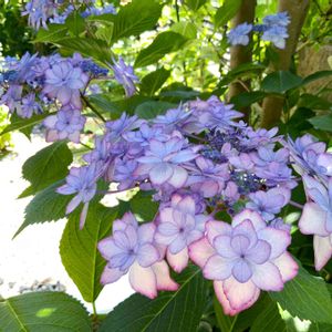 紫陽花 雛祭り🎎 咲き始めから ずっと同じ色です 夏椿の木陰で涼しげ 今日は風はあるけど真夏日☀️☀️