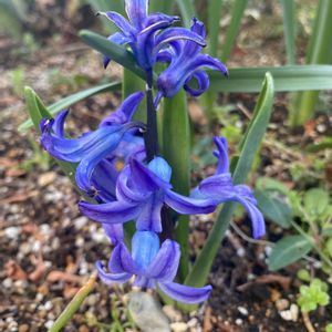 今日のお花🩵 1️⃣ 去年のヒヤシンス🪻庭に植えたことわすれていて…😋 小さい芽が出て来て、なんだったかな?と思ったらヒヤシンス🪻でした😊生命力ありますね〜💪🌱 2️⃣ 暖かさにムスカリが次から次に顔を出して来ました💙