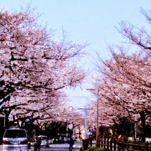 桜土手のバス停🚏🚌から横断歩道の途中で🤳 今日は暖かく、一気に開花しました。