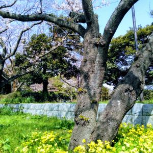 さくら堤を散策途中で、幹から桜🌸が開花してました。