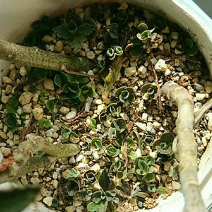 胡蝶の舞。 もう数年わが家のベランダで力強く頑張ってくれてます。多肉の魅力を知る前からです。 茎の途中から元気な根が出てきてるのを発見。このまま土に到達するのかな?多肉たちは観察することが多くて楽しみもいっぱいです😊