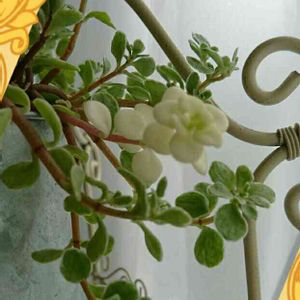 グリーンネックレス。 右の子は垂らして 左の子はポットの中に集合‼ どちらも雨ざらし☔プリプリで可愛い。
