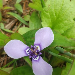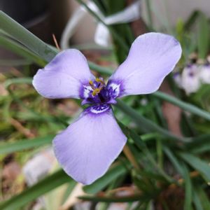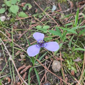 チリアヤメ ふと!足もとみれば 小さな花が… 検索🔍️してみれば雑草とか 一日花で夕方には萎んでしまいましたが 二連咲きでかわいい…
