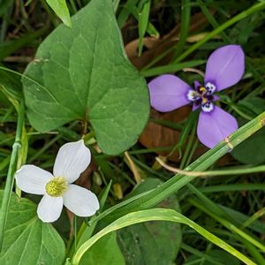 雑草の中にチリアヤメとドクダミのコラボ 仲良く可愛いお花ですネ‼️