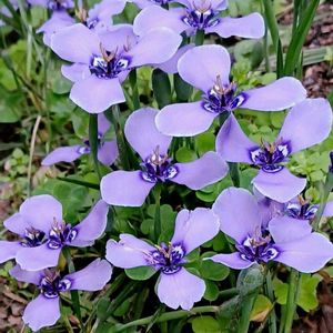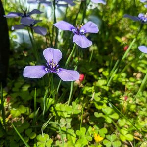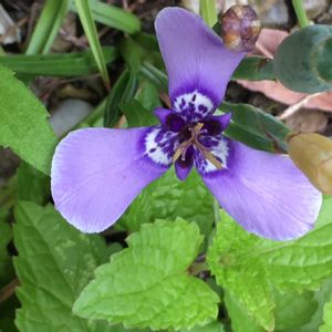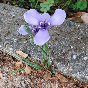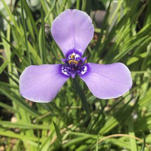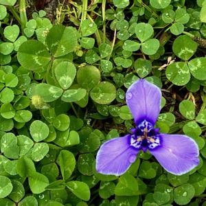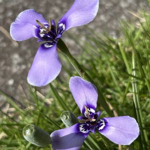 散歩中珍しい 草花を発見 スマホで撮影し 帰宅後 早速検索🔍☘️ チリアヤメ(ハーベルティア)アヤメ科 ヘルベルティア属 草姿が小さいわりに花は大きく見える 花径は3cmくらい。
