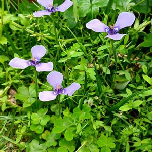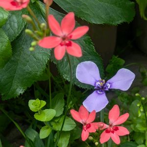 1、2枚目は同じ植物。 最初は、良い場所に種まきしていたのに、意外な場所で咲いてます。 当初種まきした所は、色々植物がある為、引っ越したんでしょうね〜。