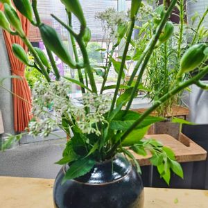 おはようございます(^-^)/ 今日も☔‥昨日は恐ろしいくらい降りました☔加減して降ってくれたら良いのに(T.T) 1️⃣ウバユリの蕾(友人から) 2️⃣ヒヨドリバナ?でしょうかね? 3️⃣鶏頭 4️⃣モミジアオイ(毎日咲いてくれます) 5️⃣友人から(マクワウリ、🍆、🫑、🥚) ☆穏やかな一日であります様に🙏🩷🤍💜💛🩵❤️💗💚