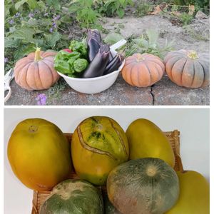 きんこうり (マクワウリ) かぼちゃ🎃 イノシシの被害に 会う前に… まだまだ未熟ですが… 収穫しました‼️😅 畑全体が食い荒らされて😣😥😡 これで1週間連続…… 毎朝、行くたびに がっかりしています!😰 なぜ (。•́︿•̀。) 我が家の畑だけ❓️❓️❓️