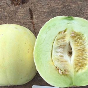 秋どりマクワウリの最後に収穫した子です。メロンとマクワウリを掛け合わせたもののF2です。綺麗な翡翠色で果肉も厚いんですが、糖度が9度🤣 残念‼️ みどりのまとめにはもう一つ写真載せておしまい!ご覧いただいたみなさんありがとうございました🙇♂️